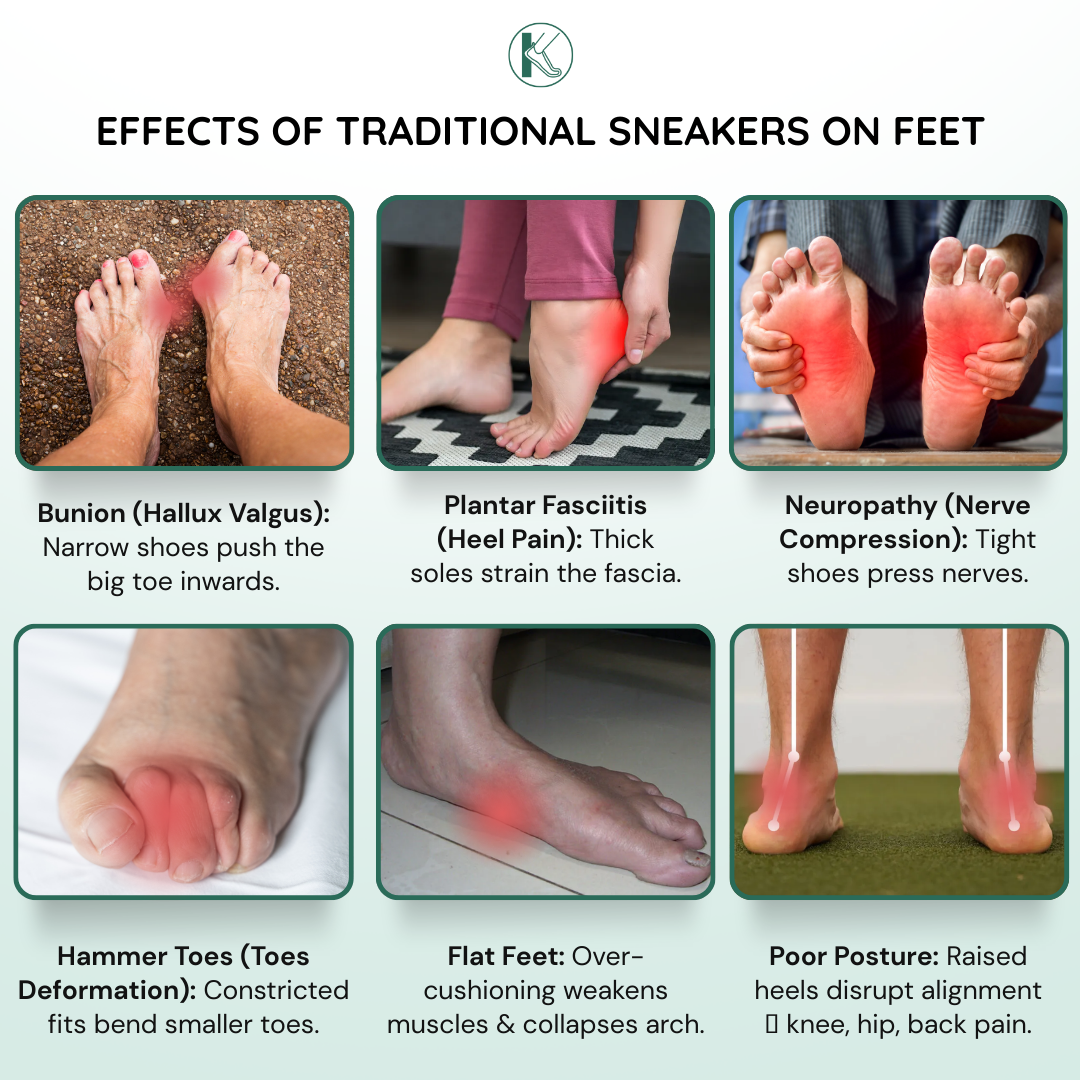 Rigid soles, narrow toe boxes and excessive cushioning have reshaped our feet, dulled natural movement, and weakened muscles over time.