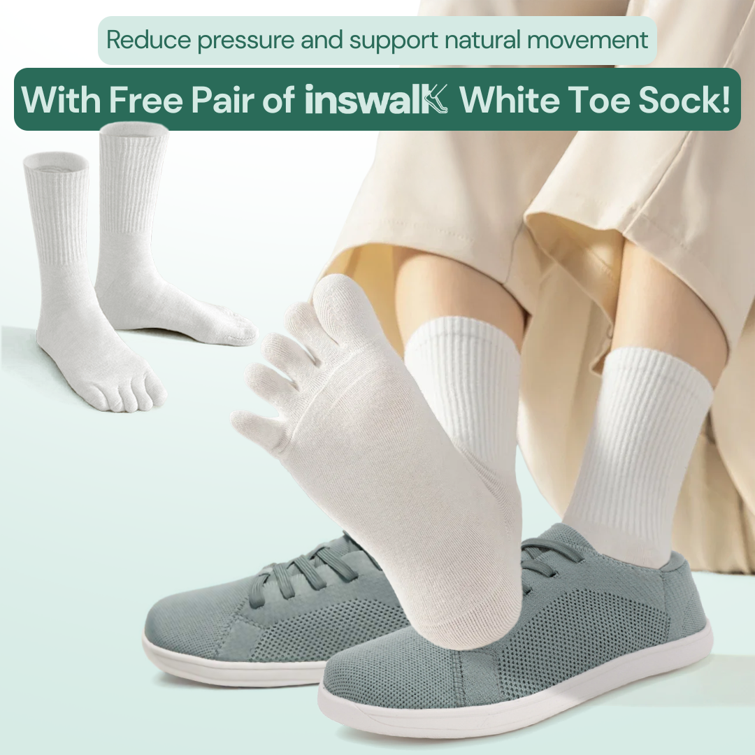 inswalk flexible, low-profile soles let your feet feel the ground beneath, restoring vital sensory feedback for better movement and stability. Paired with breathable five-toe socks, inswalk shoes offer unmatched comfort and freedom. No squeezing, no bunching, no compromise and feel grounded, move freely.
